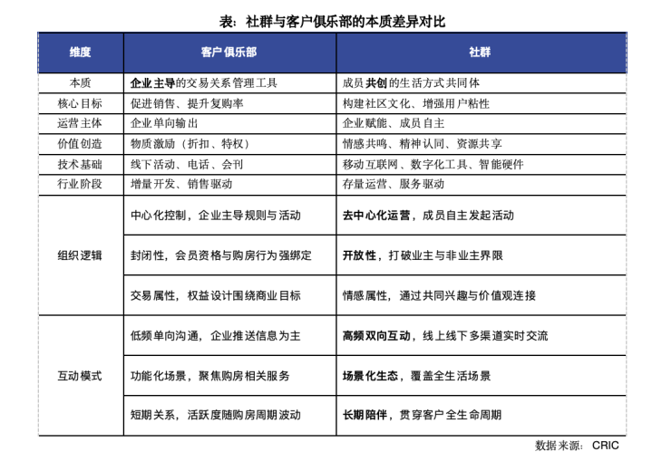 在地产社群运营热度高企之时,我们不得不指出的是,当前兴起的地产社群(如华润润比邻)与传统客户俱乐部(如万客会、保利会)存在本质差异,这种差异不仅体现在运营模式上,更反映了行业底层逻辑的深刻变革。